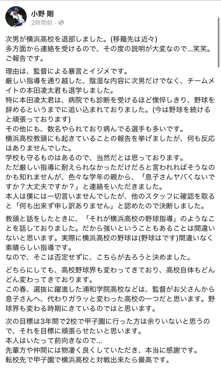 横浜高校も渡辺と小倉いなくなって指導者変わっとるんやな