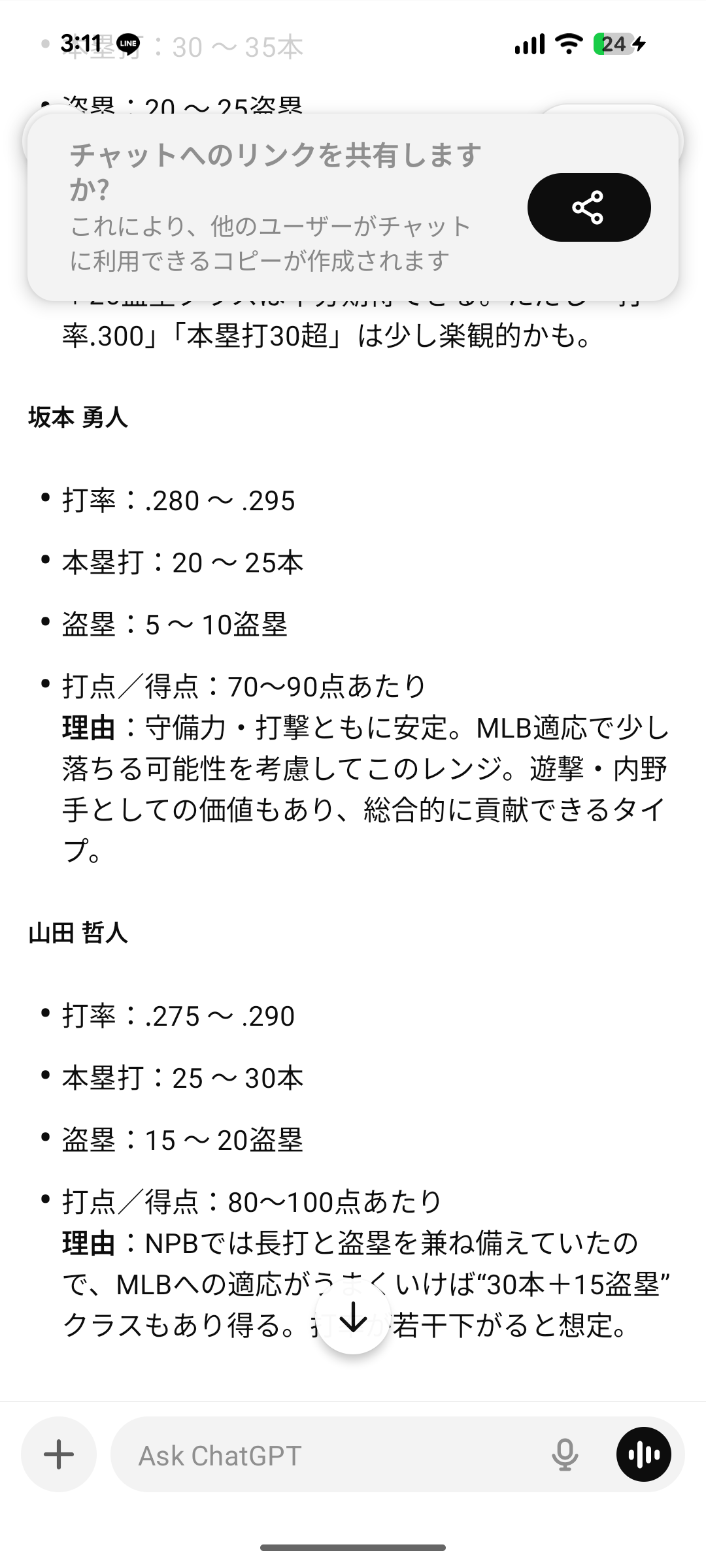 坂本がそんな打てるわけねーだろと。そんだけ打てる評価ならもっとメジャー球団から話きとるわ